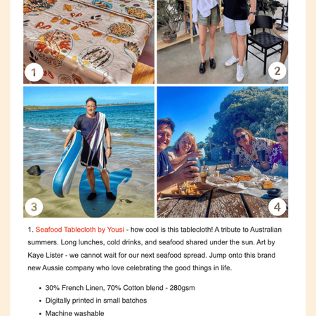 Every Yousi cloth begins as an original artwork, created in collaboration with illustrators who bring food, culture, and gathering to life.